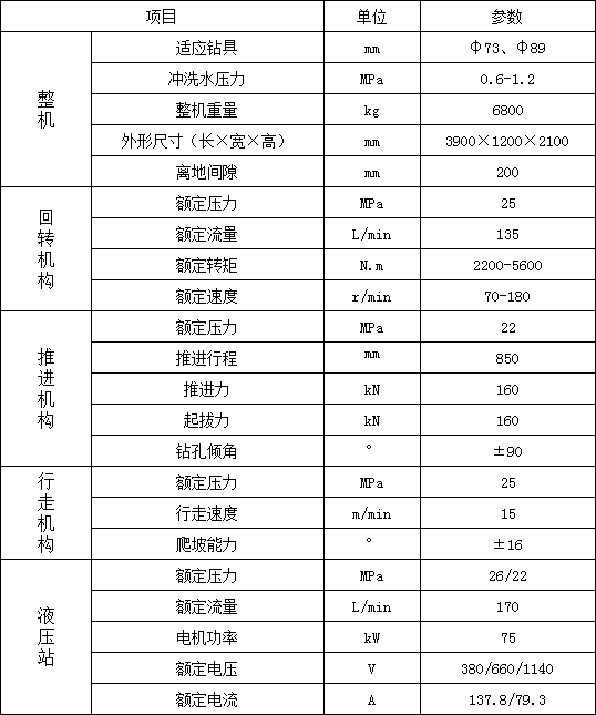 1. 履帶行走,大大提高移鉆、穩鉆的效率,顯著減輕工人的體力勞動強度;